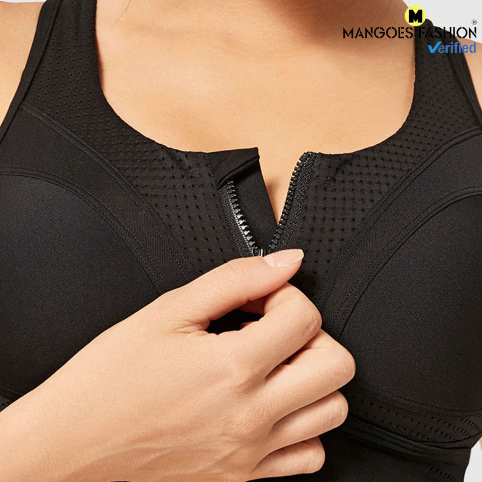 Soutien-gorge de sport haut sans fil bonnets moulés non amovibles Power Zip avant Racerback rembourré soutien-gorge de course respirant maille solide ajusté