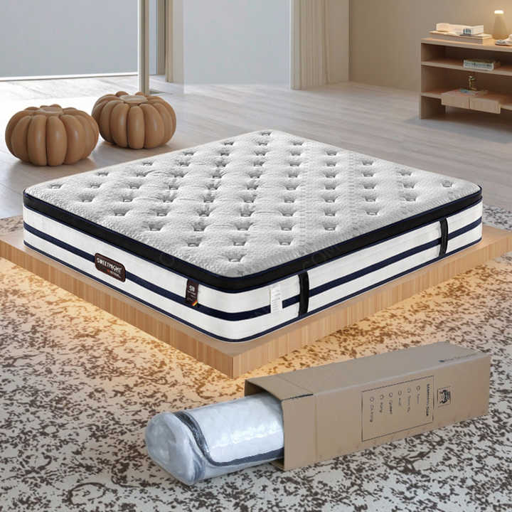 Matelas à ressorts ensachés 7 zones de qualité supérieure, matelas Queen Size enroulable, matelas en mousse Novilla pas cher