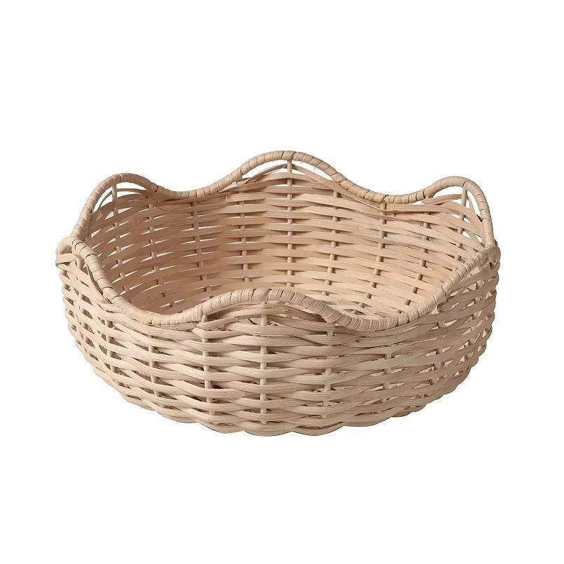 Bol à fruits en rotin poli fait main de haute qualité, compatible lave-vaisselle, design moderne et luxueux, reflète la soin et la précision.