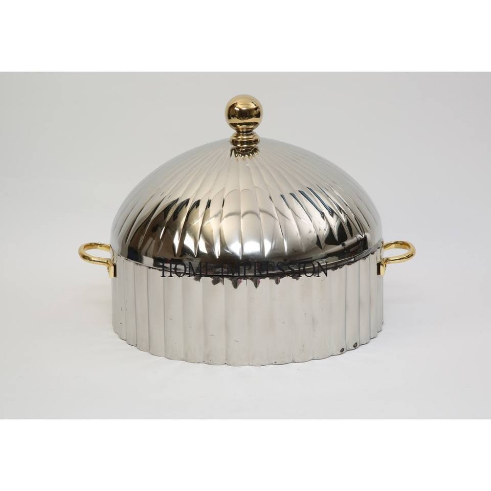 Matériau de haute qualité couleur argent brillant poli Unique fantaisie Designer forme ronde organisation de stockage des aliments casserole