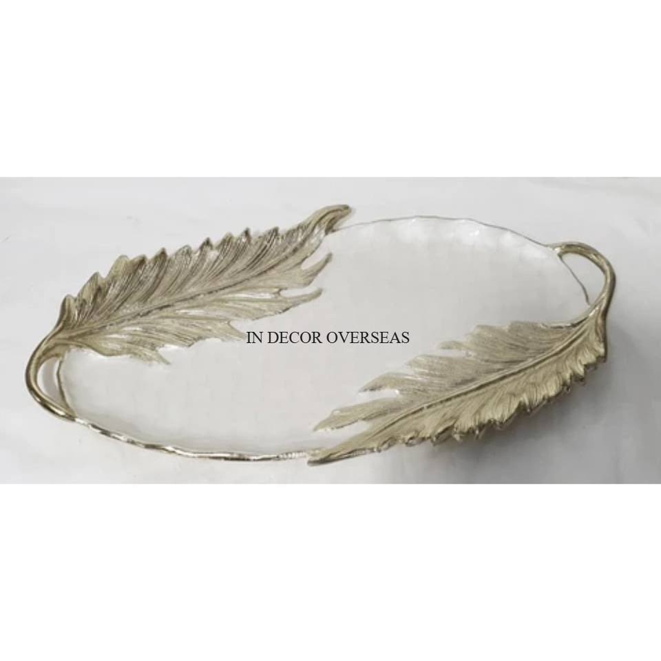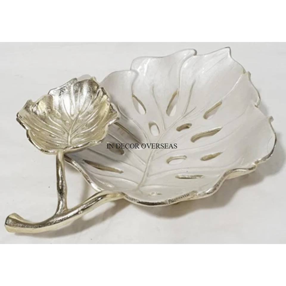 Bol enduit de poudre de couleur blanche en métal de haute qualité avec des feuilles polies brillantes argentées Design Home Decorative Supply