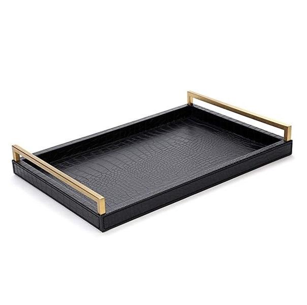 Plateau de service de style haut de gamme Plateau de service rectangulaire solide en métal avec poignée Plateau de qualité supérieure écologique à faible coût