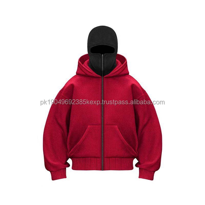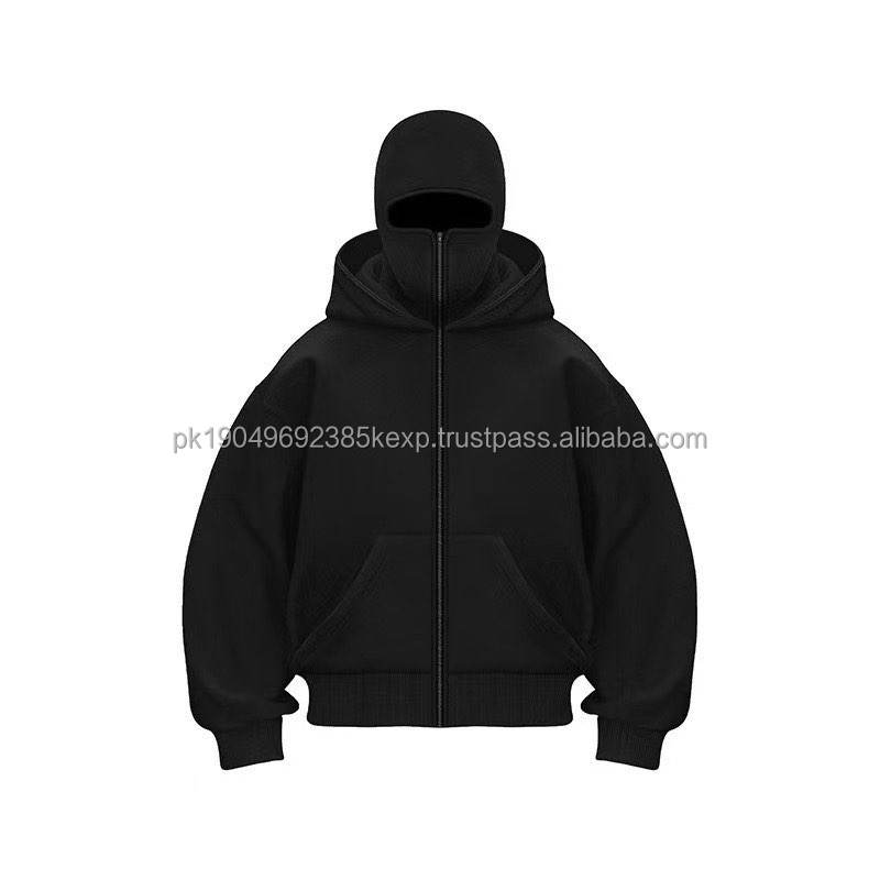 Sweat à capuche avec masque intégral de style ninja pour homme, couleur contrastée, style urbain, avec un design de double chapeau personnalisé