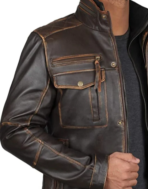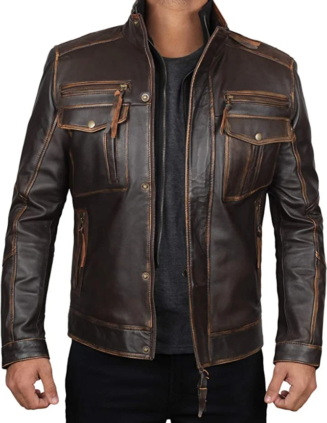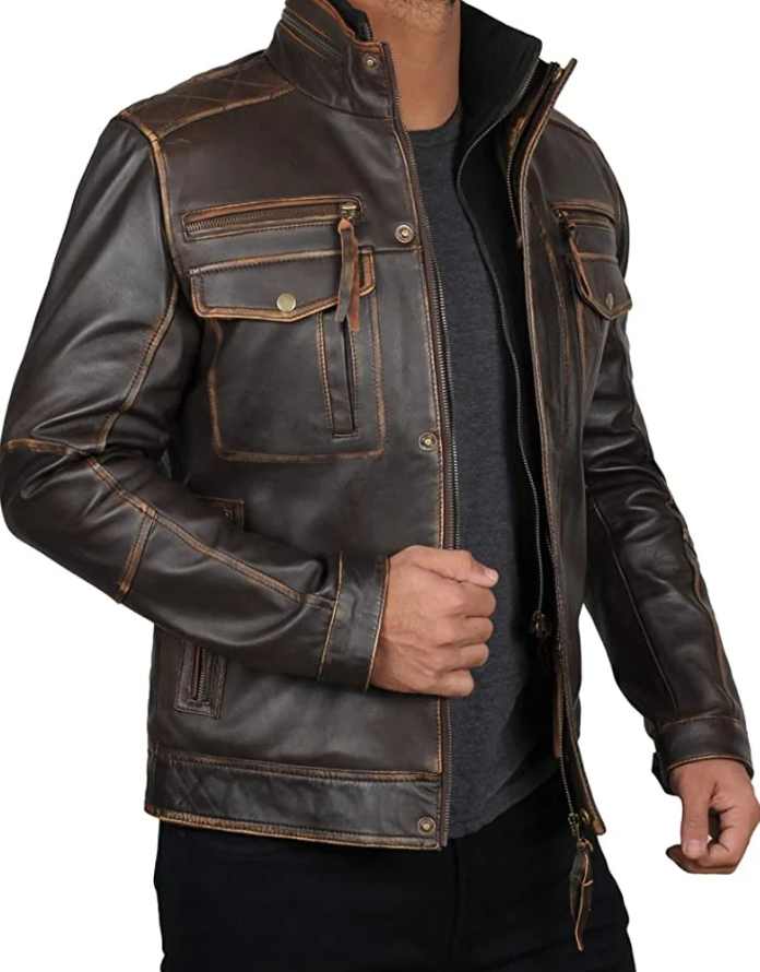 High Street Distressed Custom 100% Veste multicolore à col montant en cuir véritable avec doublure respirante Viscos Fermeture à glissière