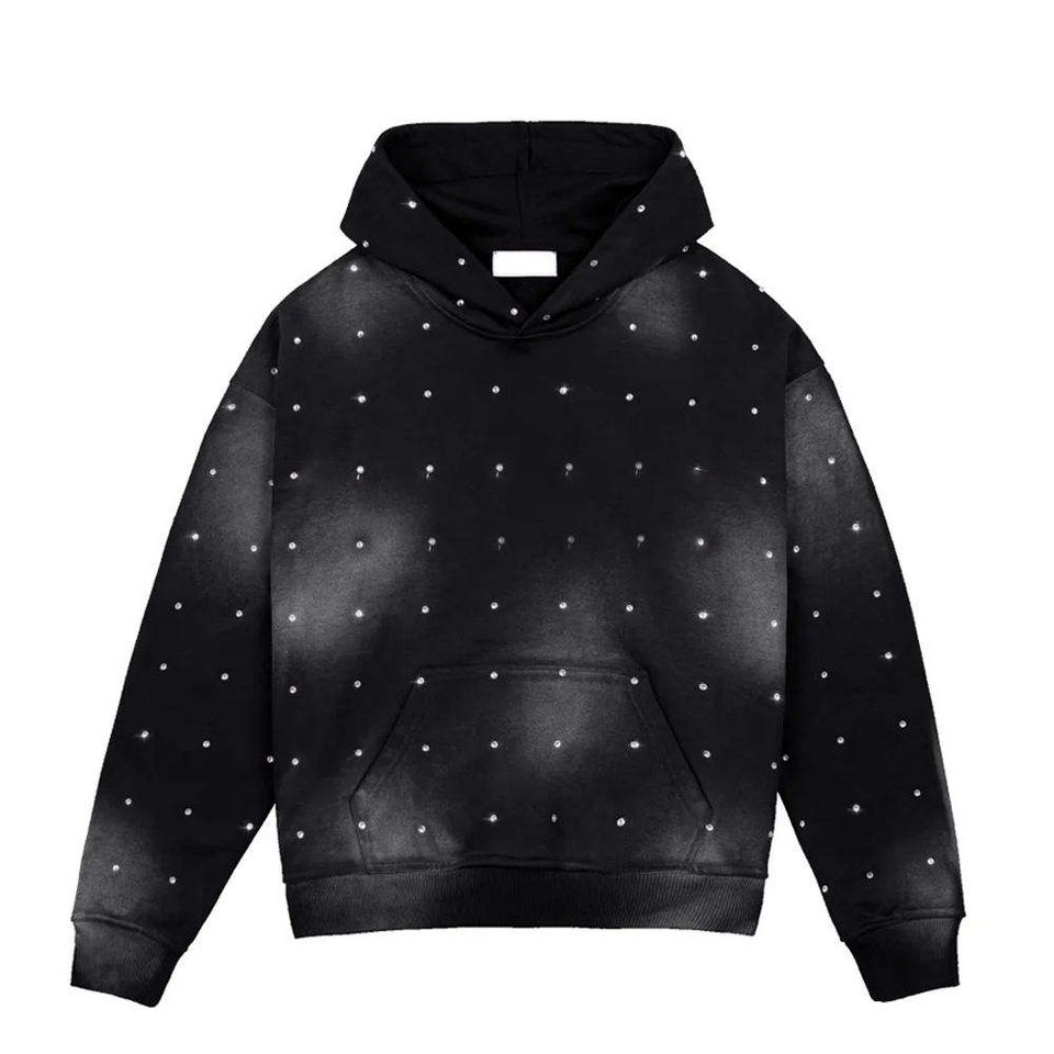 High Street Men Rhinestone Hoodies Cotton Blended Factory Made Solid Winter Fleece Wholesale Hoodies