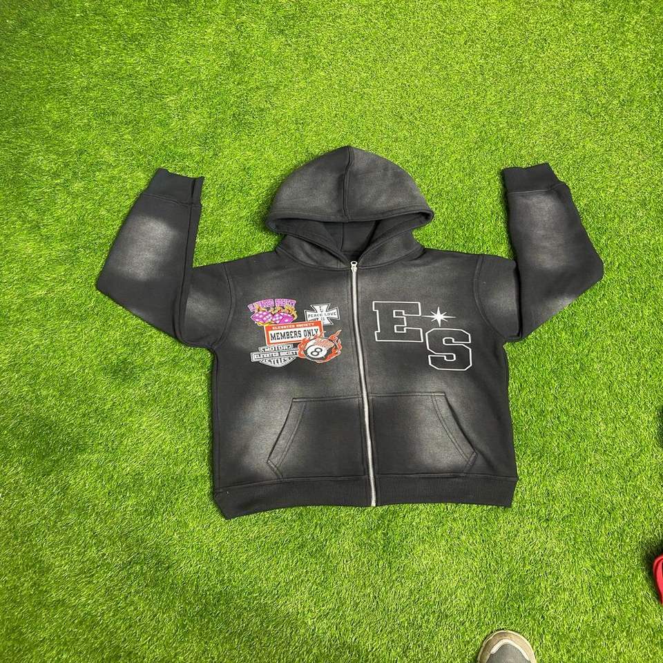 Sweat-shirt à capuche zippé pour homme, style streetwear, logo personnalisé, lavage à l'acide, vintage, surdimensionné, délavé à la pierre, effet usé