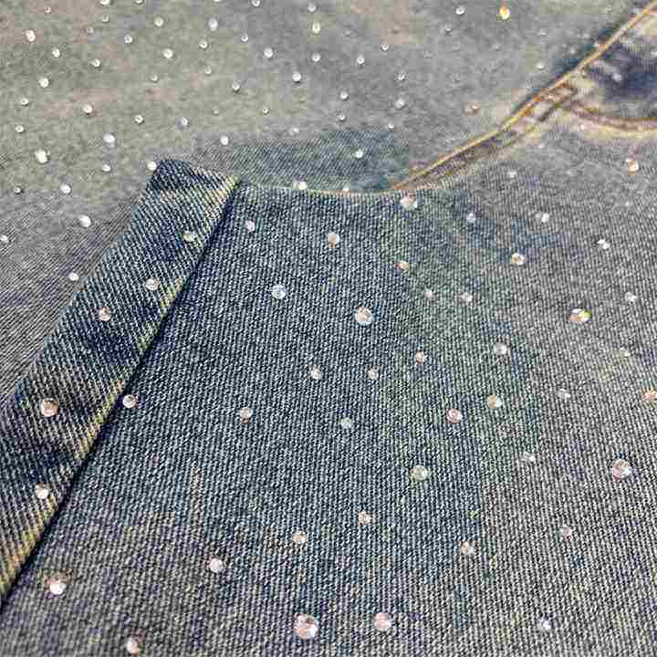 Shorts en jean pour homme style High Street, délavés au soleil, entièrement ornés de strass, vintage, décontractés