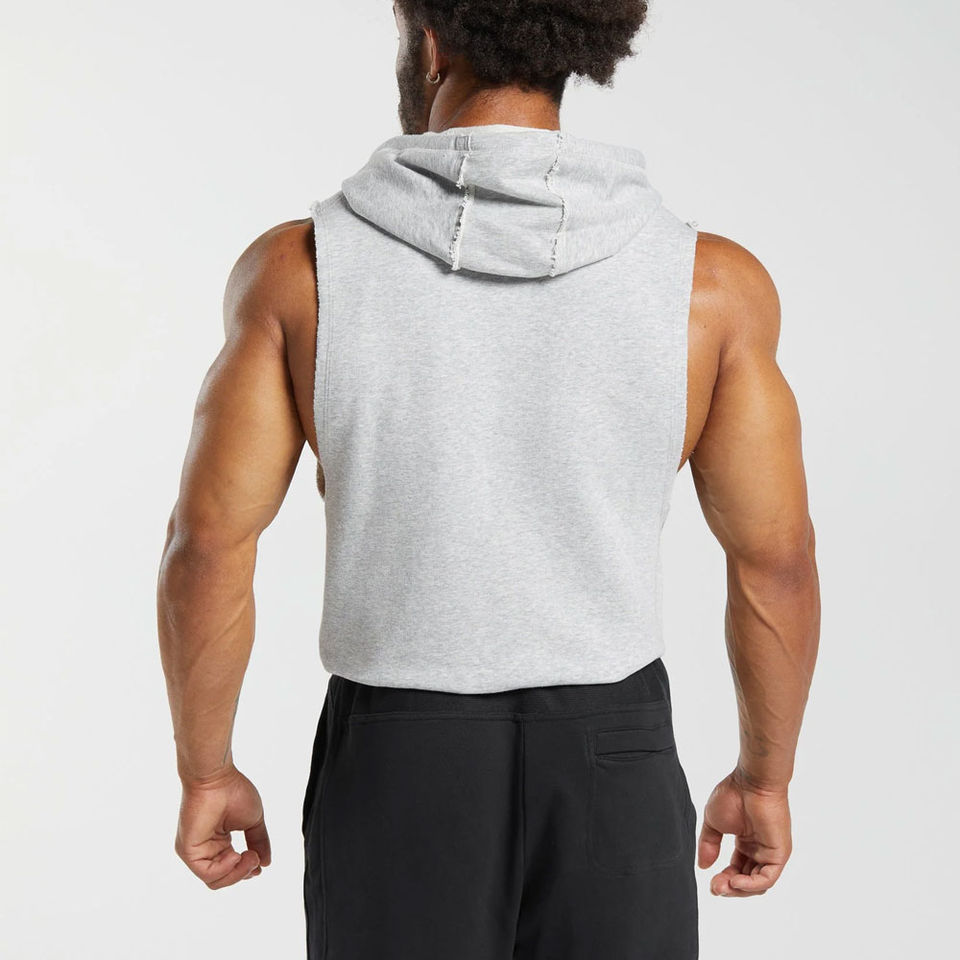High Street unisexe léger 100% coton biologique surdimensionné sweats à capuche de gymnastique imprimé personnalisé conception sans manches hommes Streetwear