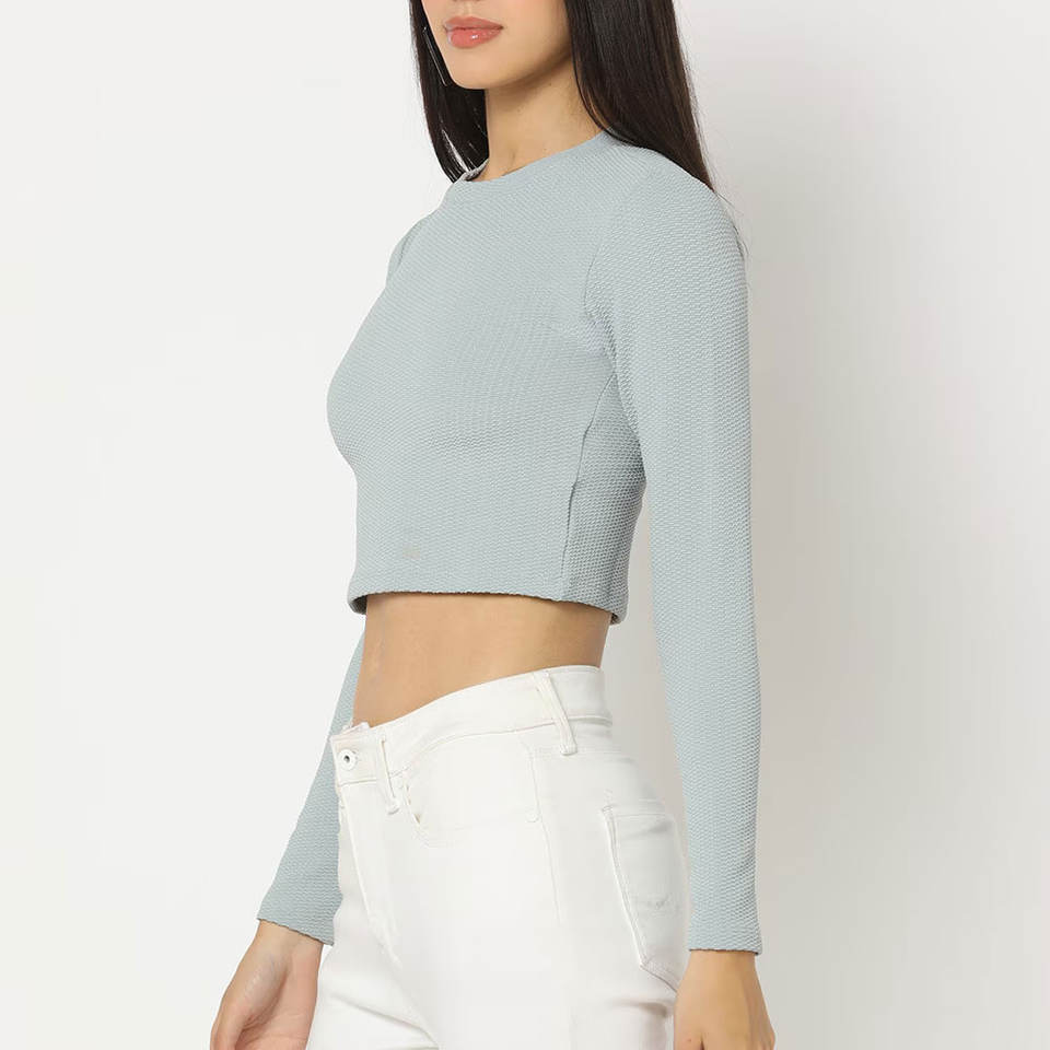 Crop top femme à manches longues, design élégant, style streetwear, nouvel article imprimé, vente directe d'usine du Pakistan