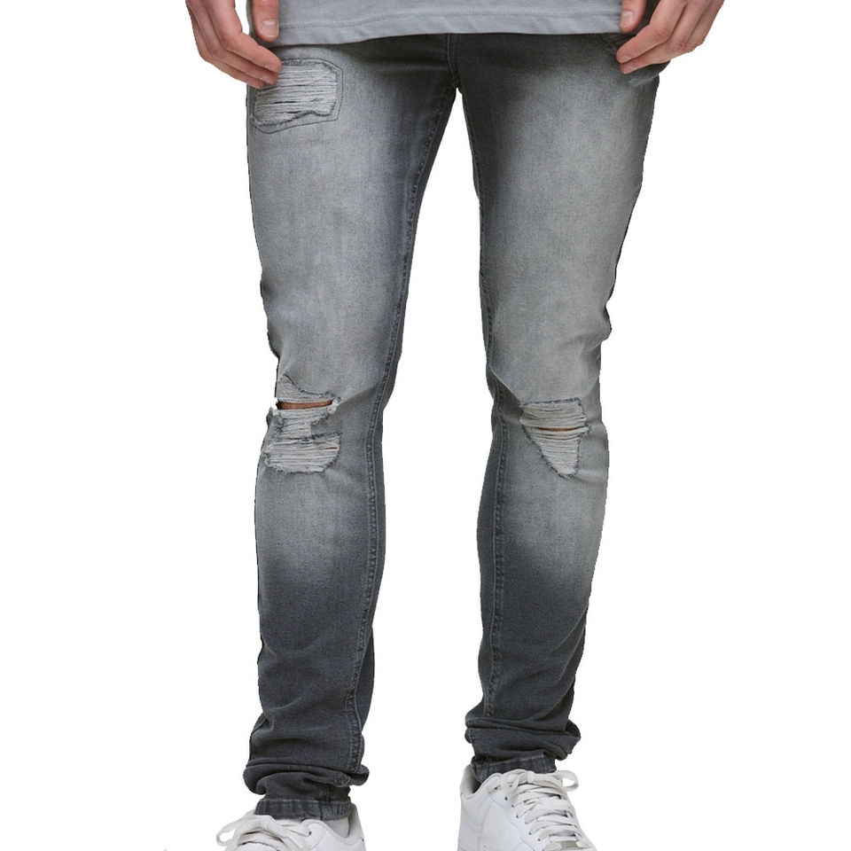 Jeans noirs pour hommes, coupe ample et large, effet délavé et usé, taille mi-haute, meilleur prix, faible MOQ