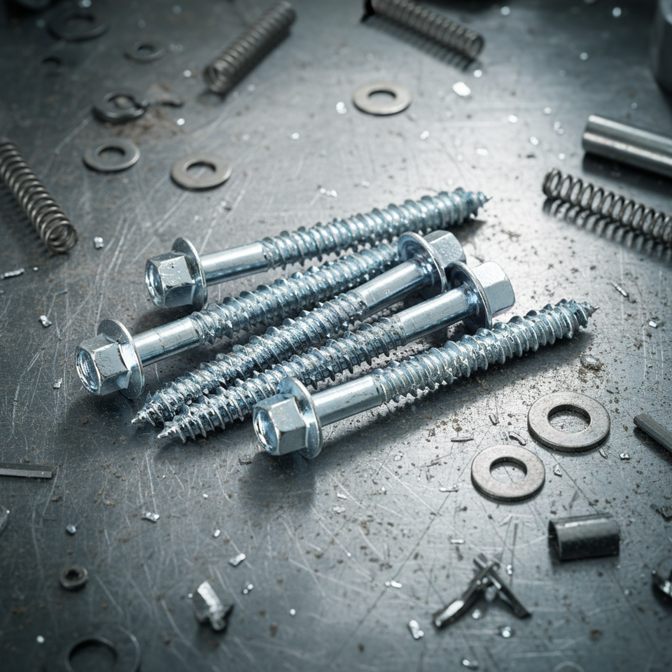 Vis à bois à pointe acérée en acier au carbone de classe 4 haute résistance, tête hexagonale externe, filetage grossier, métrique/pouce, zinc blanc/jaune