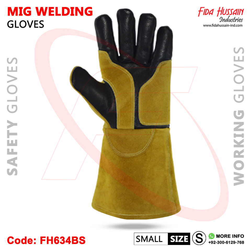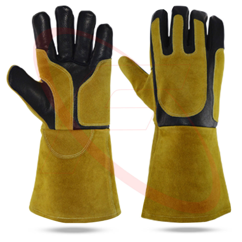 Isolation flexible haute résistance longue manchette en cuir de vachette fendu gants de soudage Mig fins gants en cuir du Pakistan