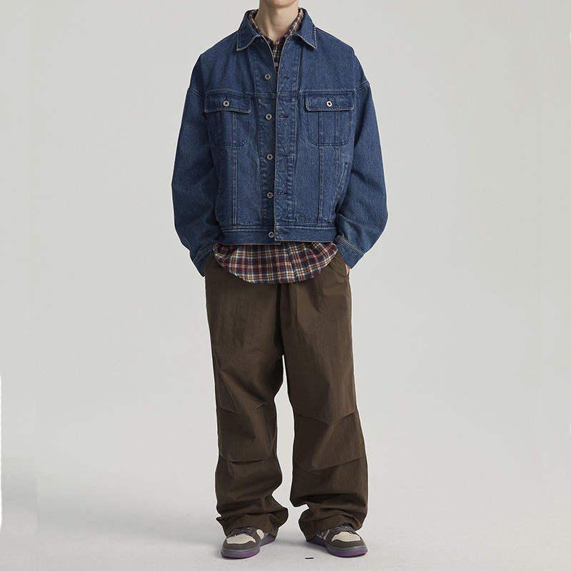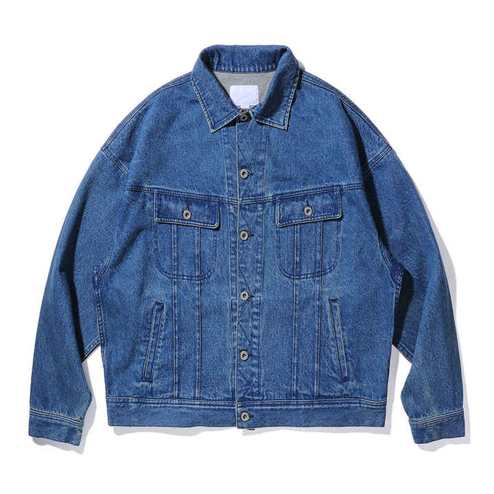 Veste en jean d'hiver pour homme haute résistance avec logo frontal, conçue pour un style urbain quotidien, couture de qualité supérieure, confort longue durée
