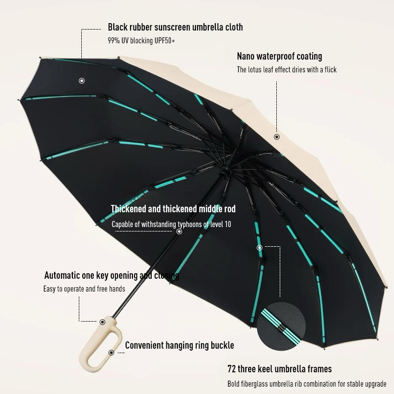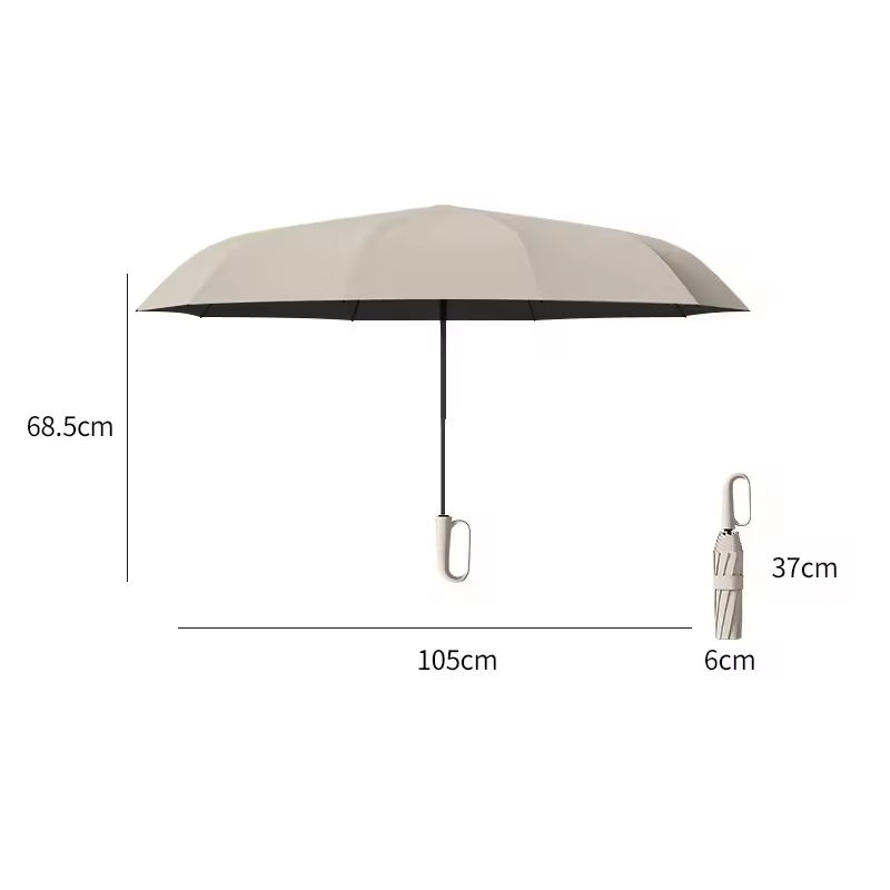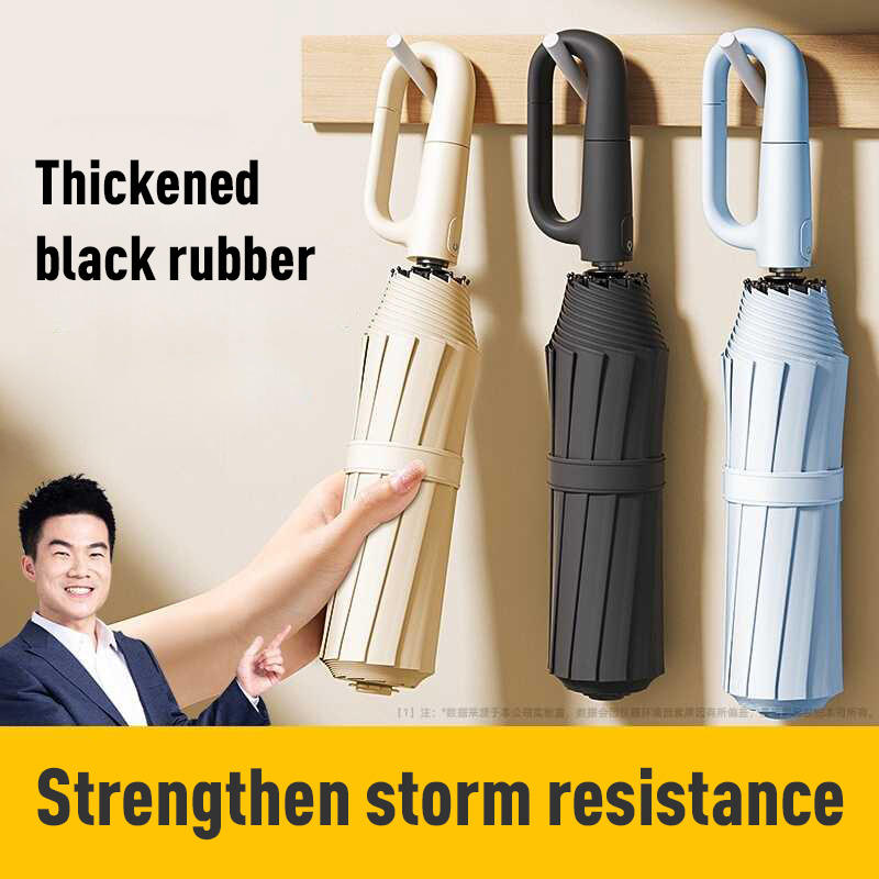 Parapluie triple pliant automatique à stockage rapide haute résistance pour adultes Parapluie à boucle à anneau rotatif moderne à nervures 10K