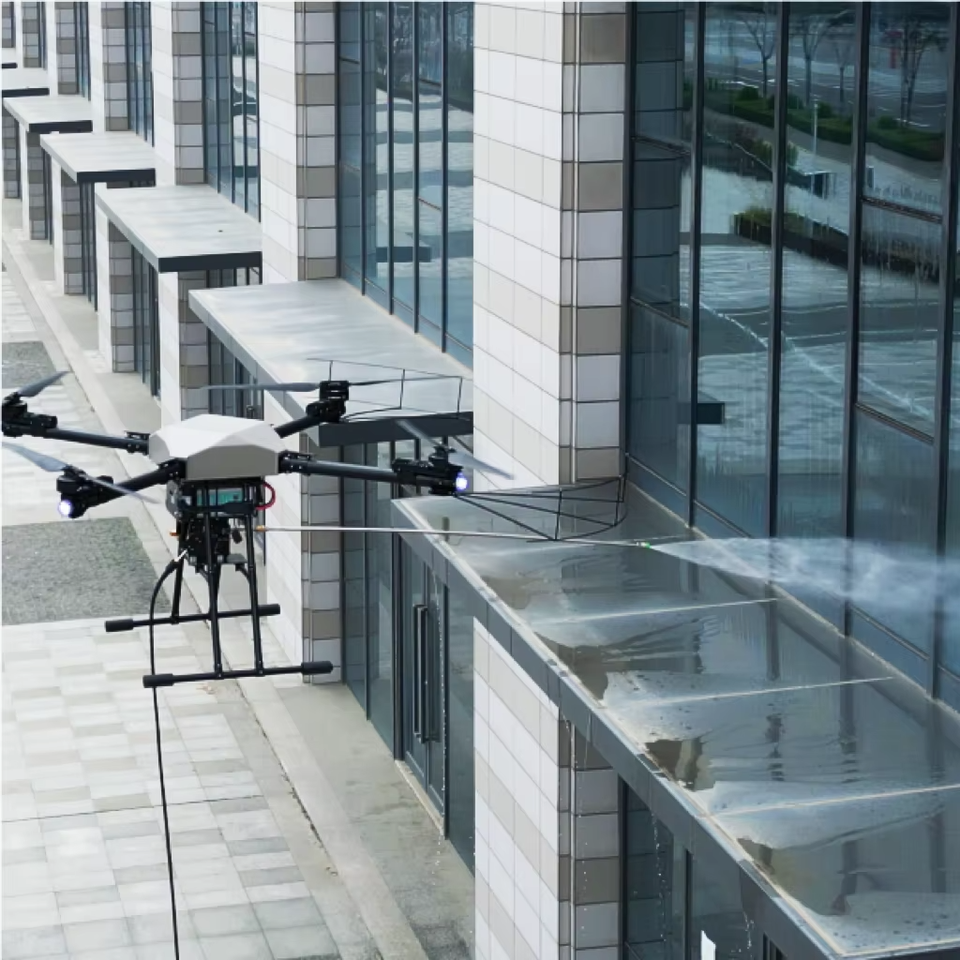Drone de nettoyage de façade haute résistance et léger, construit à partir de matériaux composites pour un rapport charge utile/poids optimal