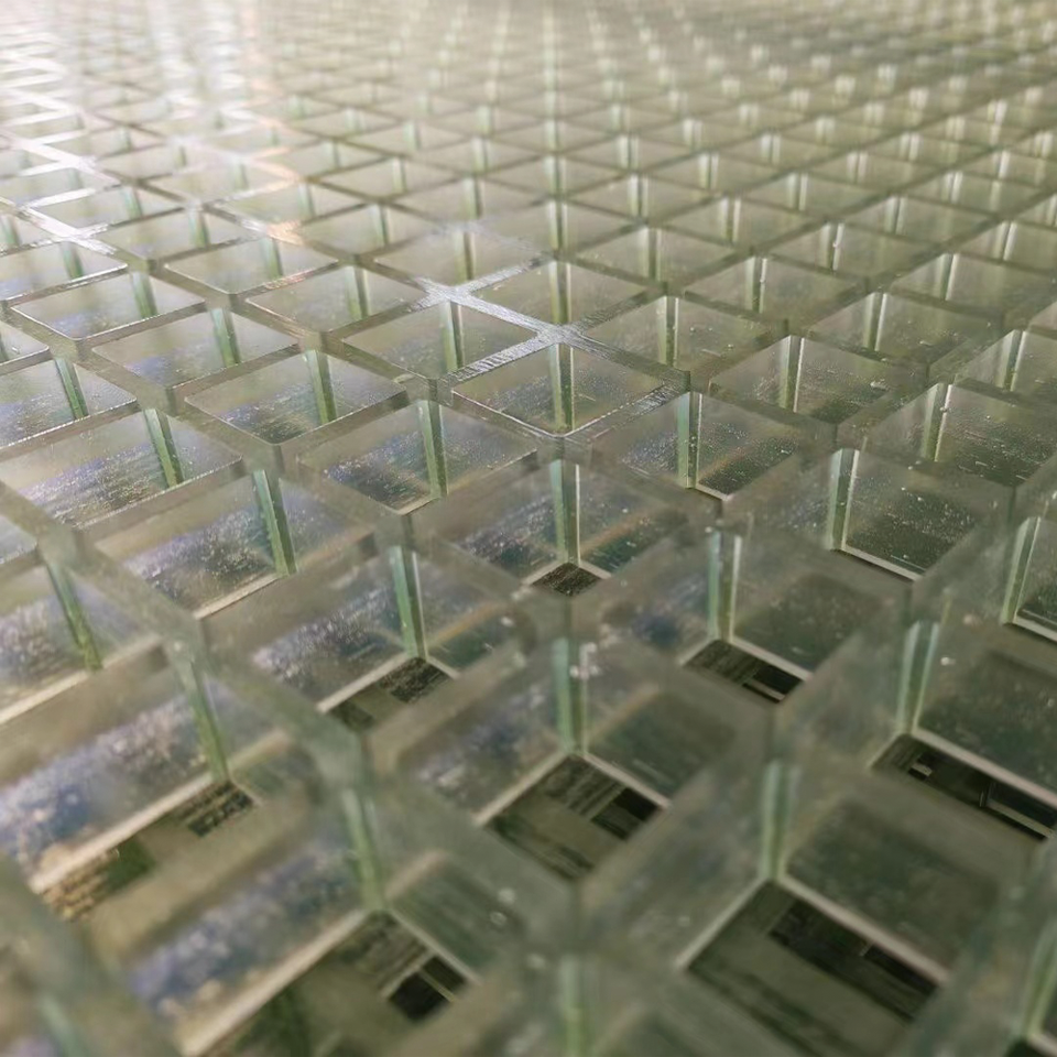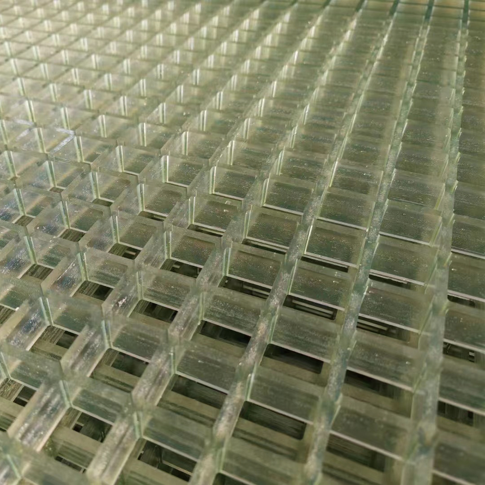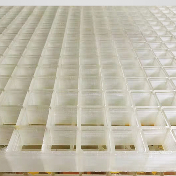 Grille en FRP à mailles ouvertes carrées haute résistance, couleur translucide, moule en résine de vinyle ester, grille en FRP transparente, moule en grille en FRP