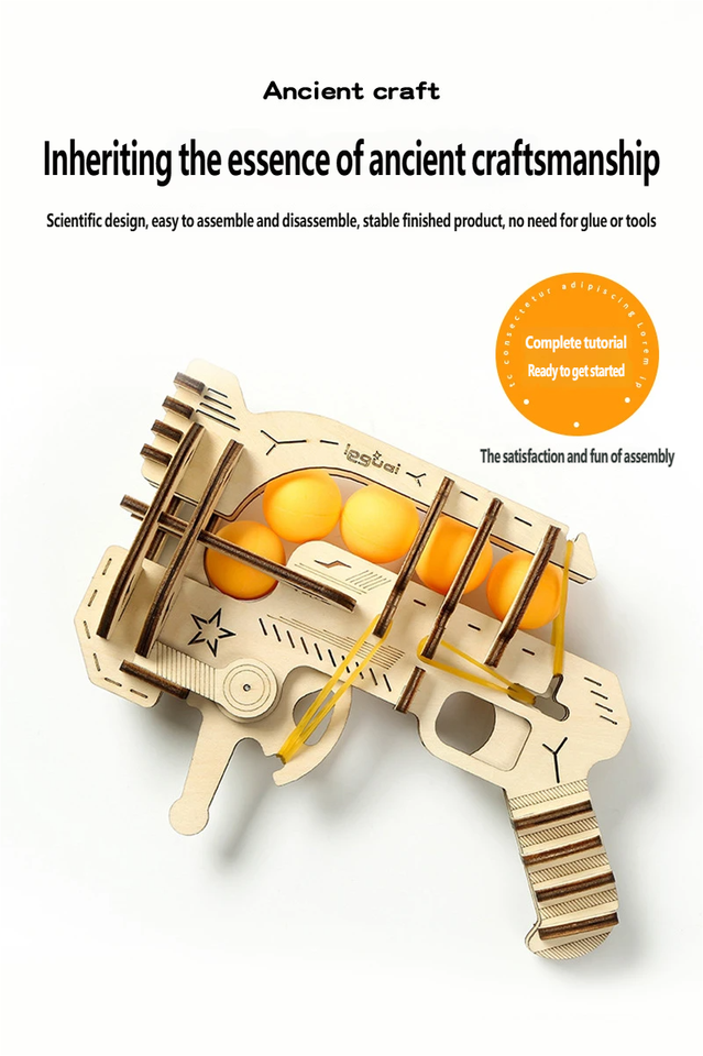 Pistolet à élastiques 3D DIY de haute technologie - Kit de modèle de construction en bois, Cadeaux éducatifs pour stimuler l'esprit