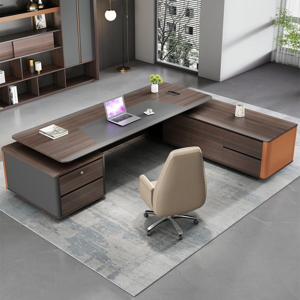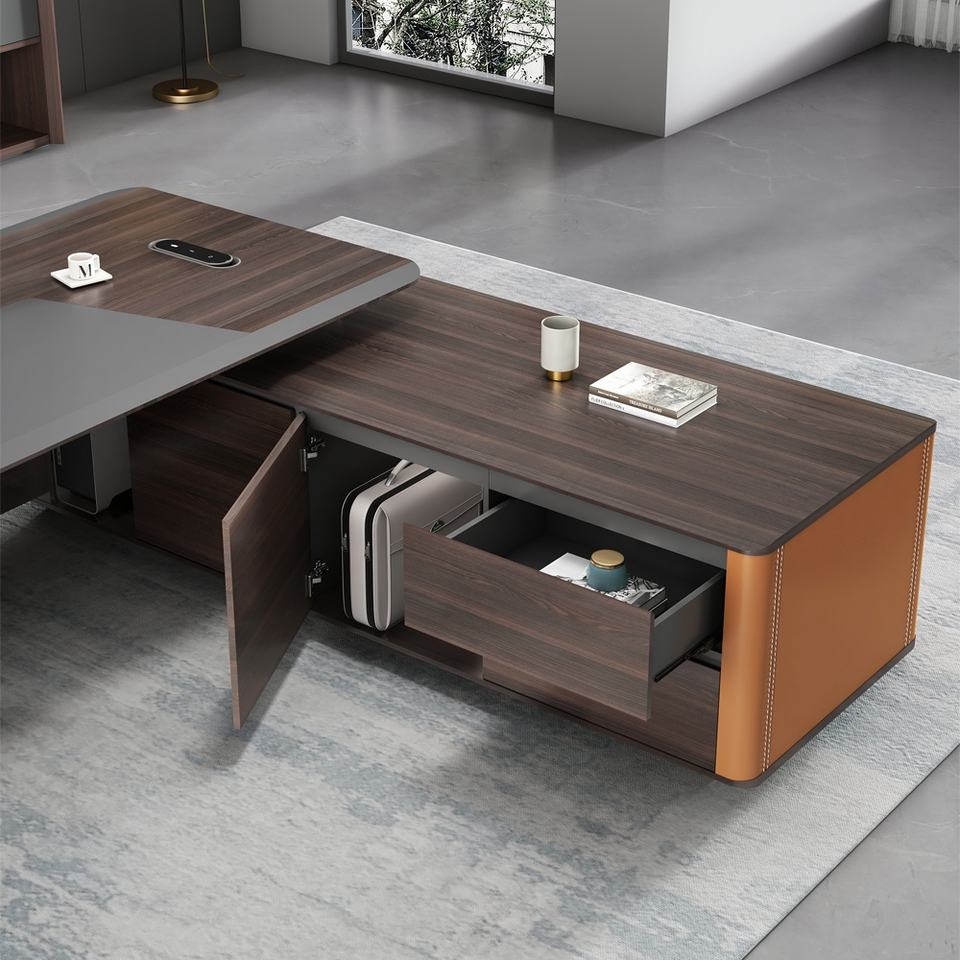 Conception d'ordinateur de bureau de table exécutive moderne High-Tech CEO Boss avec bureau extensible en forme de L