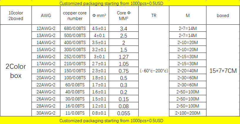 Longueur: 12AWG 2*7=14M/Box