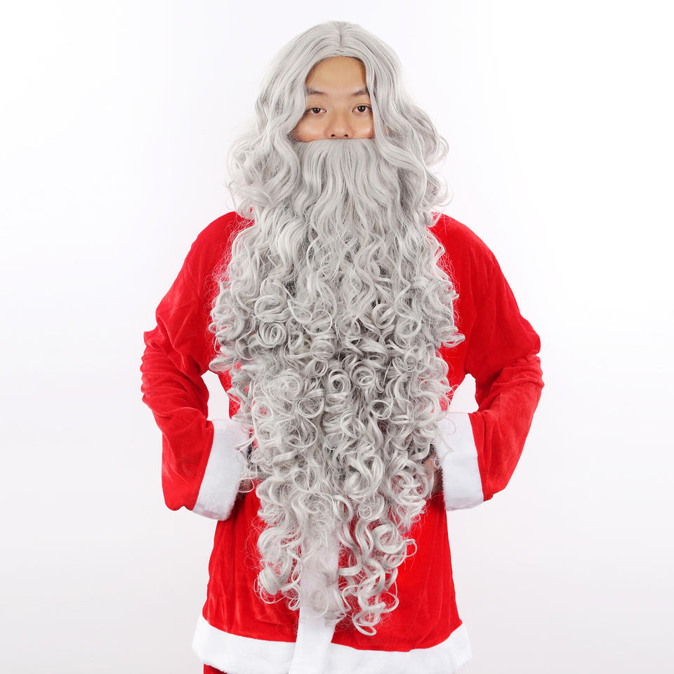 Ensemble complet de fibres haute température pour perruque de Père Noël, barbe de Noël pour homme âgé, blanc transparent gris, une pièce, stock de dropshipping Claus