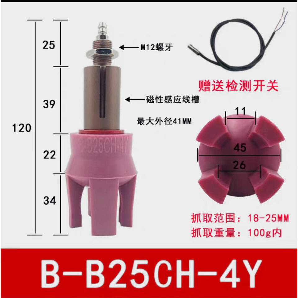 Composant pneumatique à haute température, pince flexible à quatre mâchoires B-B25CH-4Y, interrupteur de détection magnétique, alarme pour manipulateur