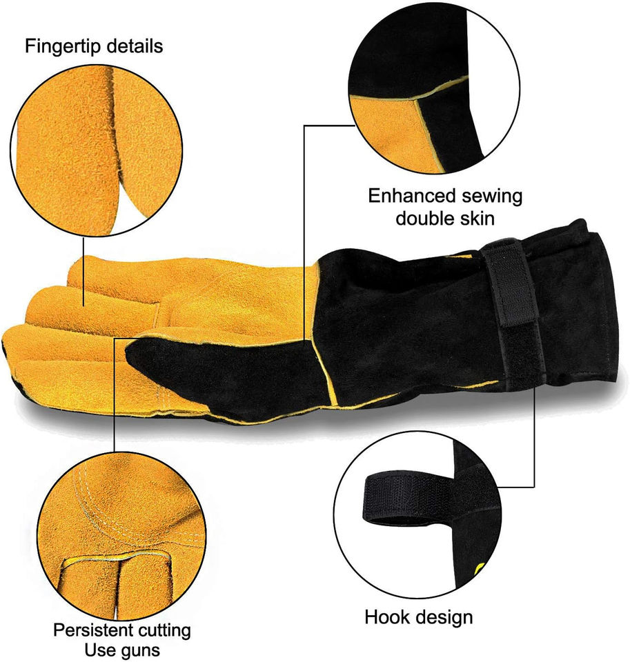 Gants de soudeur de sécurité résistants à la chaleur et au feu à hautes températures gants en cuir de vachette confortables pour le soudage de travaux industriels