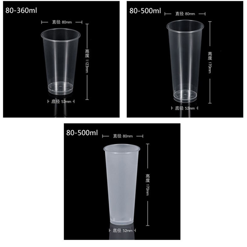 Gobelets jetables à pied haut de 80 mm résistants aux hautes températures, moulés par injection, givrés, pour thé au lait, avec couvercles plats noirs