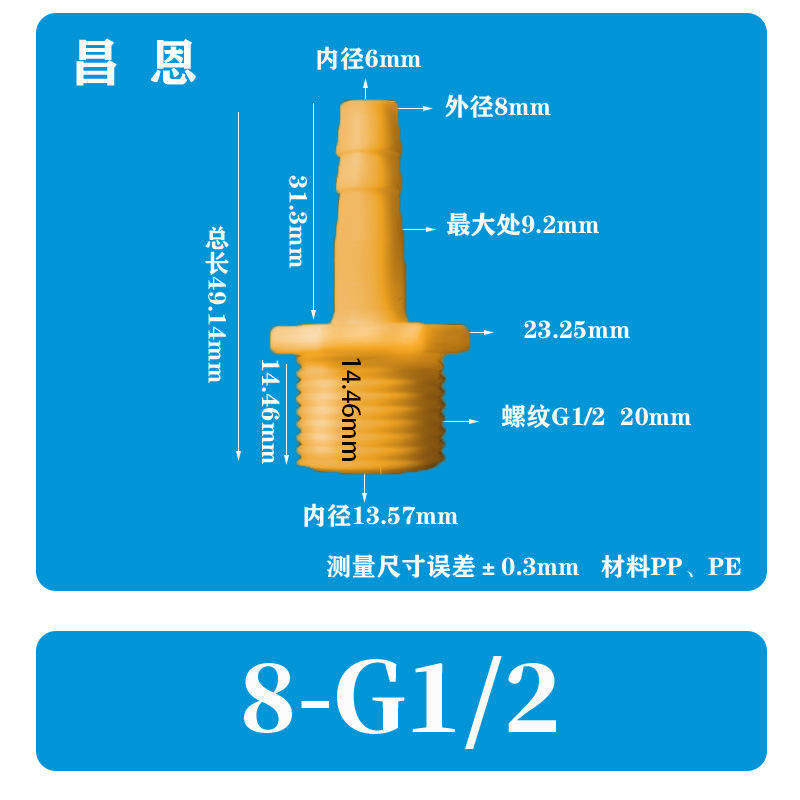 Pièces pneumatiques blanches résistantes aux hautes températures, à la corrosion et à l'ozone, connecteurs filetés mâles à 4 points/6 points, droits