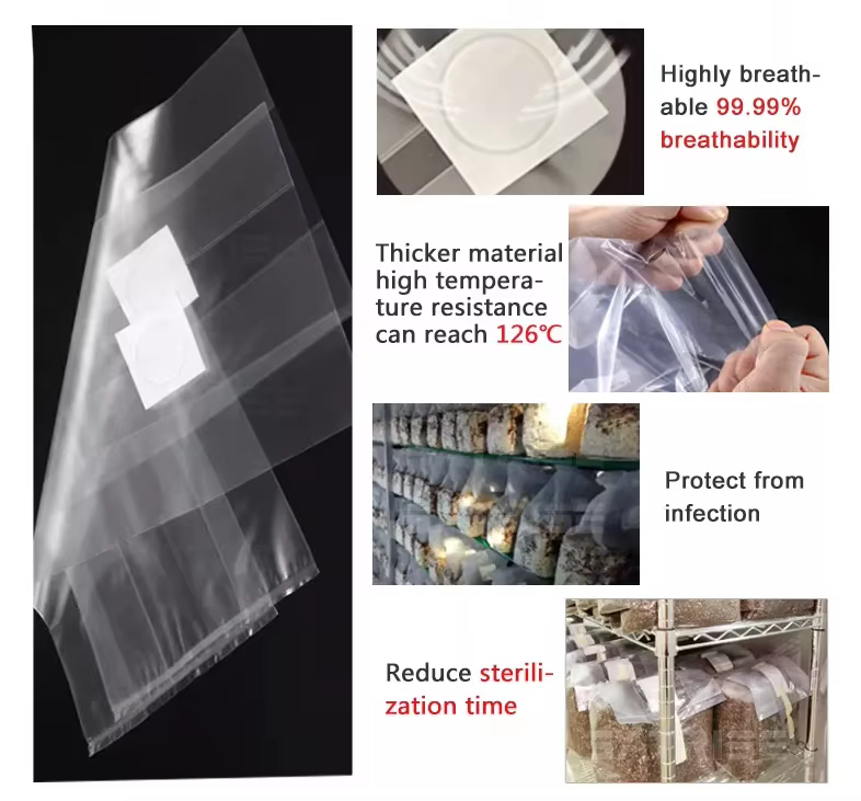 Sac de culture de champignons en plastique PP résistant aux hautes températures sac de culture de champignons comestibles pour champignons huîtres Shiitake