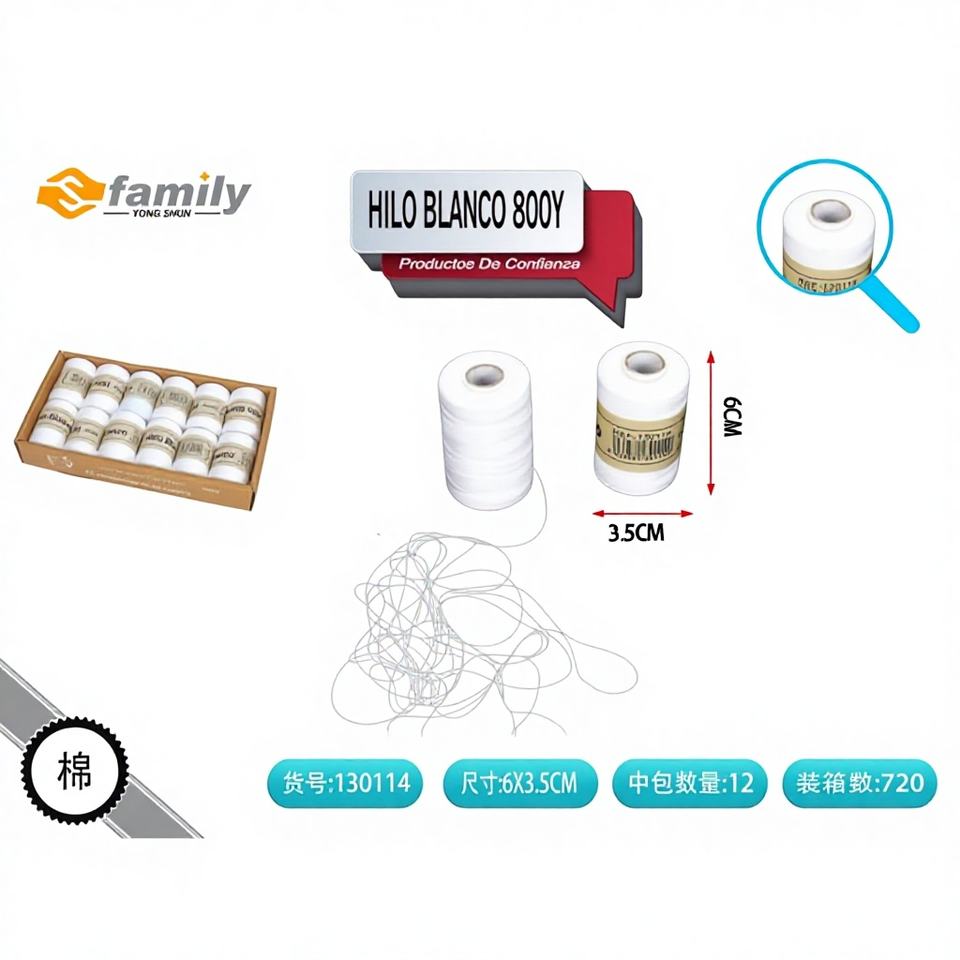 Accessoires de couture à motif brut/teint en fil de polyester blanc haute ténacité 800Y pour vêtements-Échantillon gratuit
