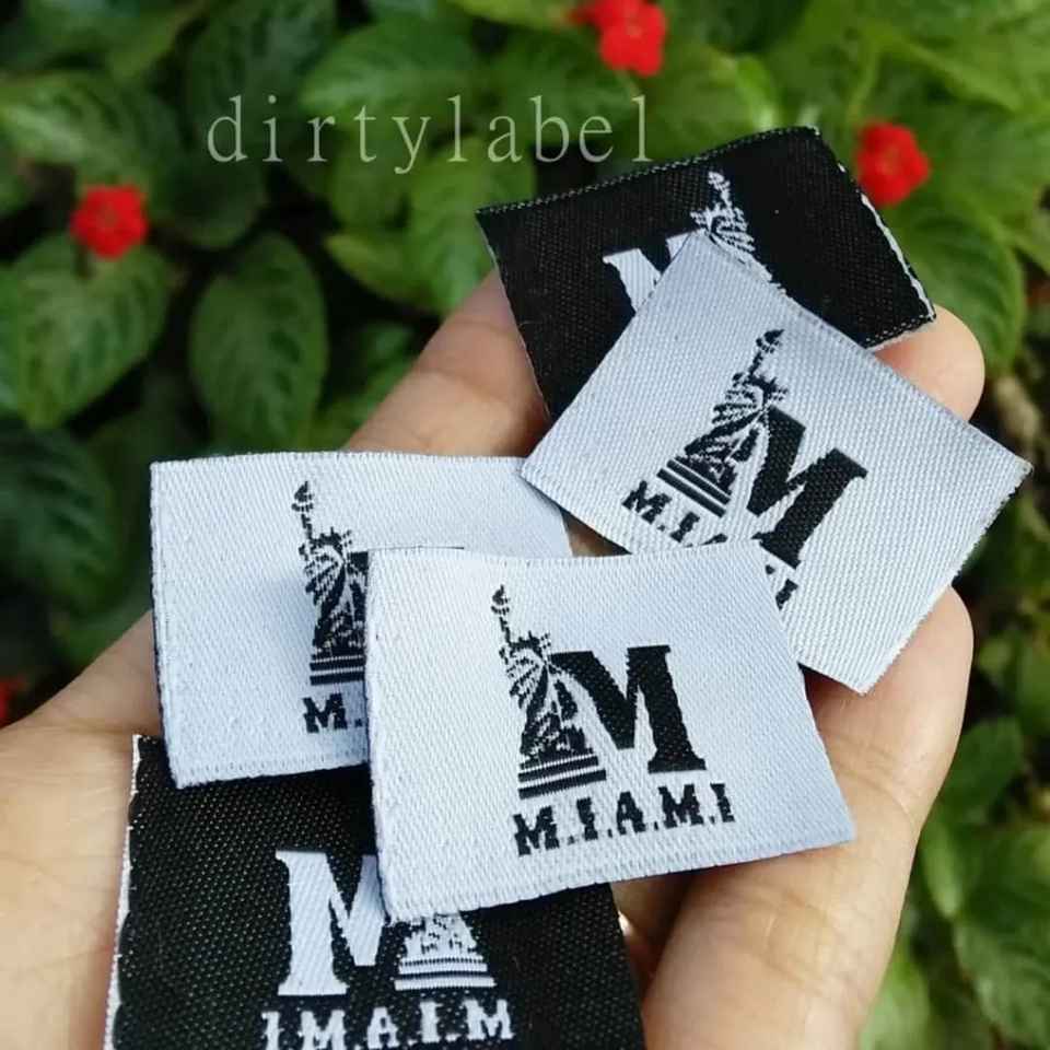 Étiquettes tissées à nombre élevé de fils pour la marque de vêtements Étiquettes de tissu en vrac personnalisées Techniques d'estampage à chaud découpées au laser Fourniture directe