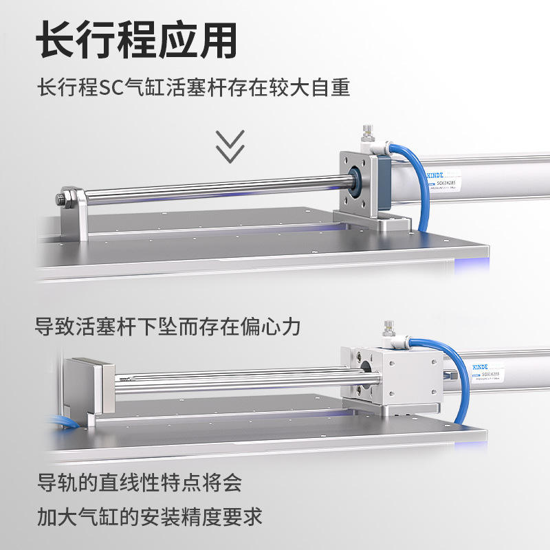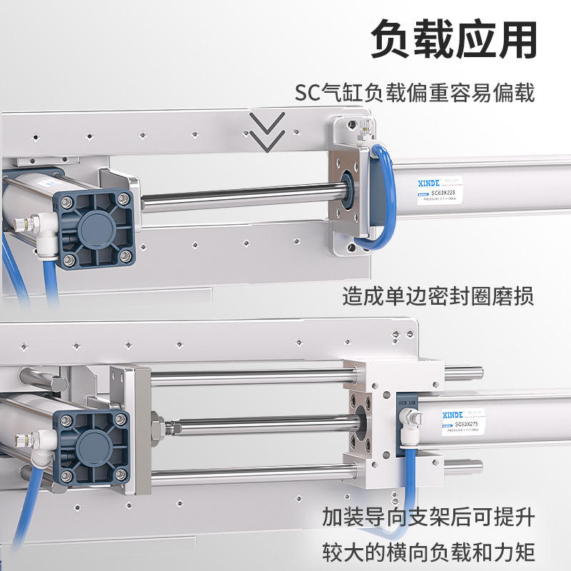 Cylindre à haute poussée avec support de guidage SC, cadre de guidage à trois axes et trois barres, noyau de piston pneumatique en aluminium durable
