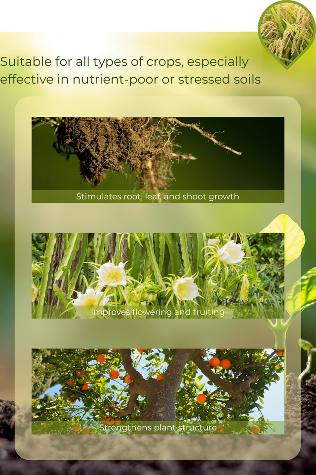 Instructions d'utilisation:Arbres fruitiers : 3 à 4 fois par an, 300 à 400 kg/ha/application
