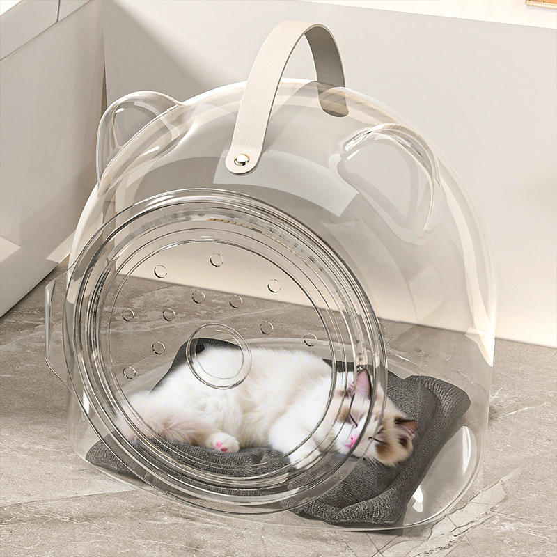 Lit pour chat en plastique haute transparence, rond, semi-fermé, respirant, pour toutes les saisons, 36,5x34x37,5cm