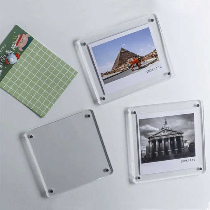 Cadre photo carré en acrylique haute transparence pour réfrigérateur, aimants renforcés, service de conception personnalisée, bords lisses et polis, étanche