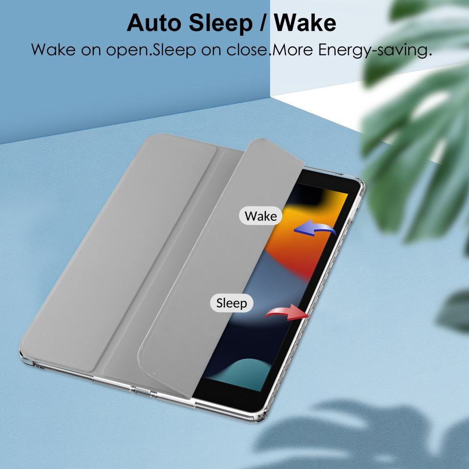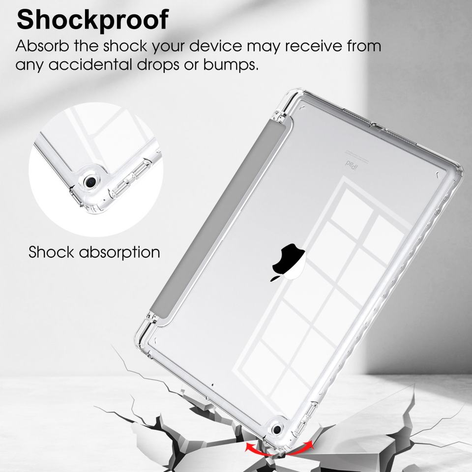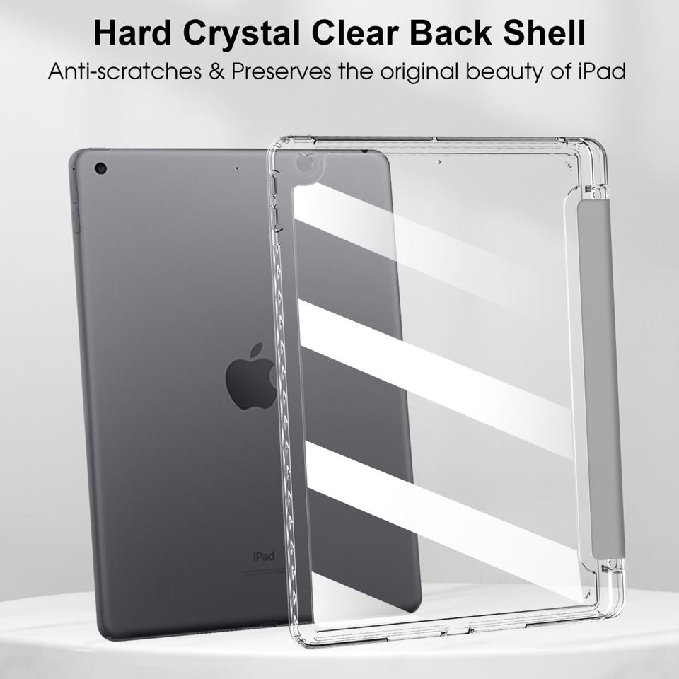 Housse en cuir PU transparente à trois volets avec dos rigide en acrylique PC pour iPad 10.2 7e/8e/9e génération