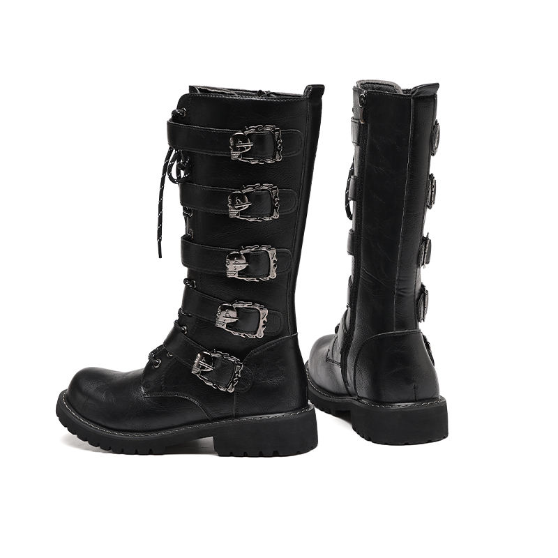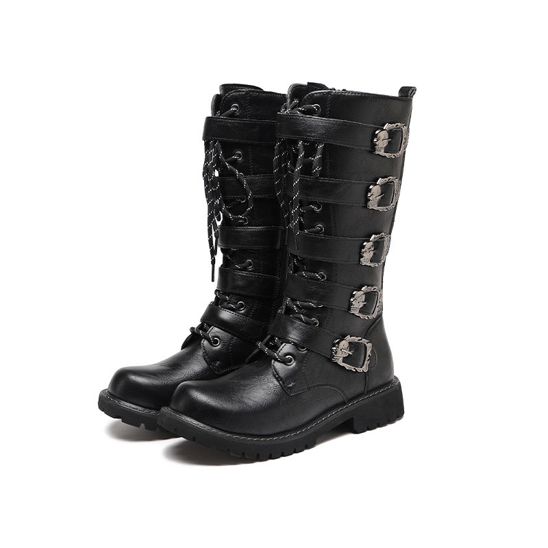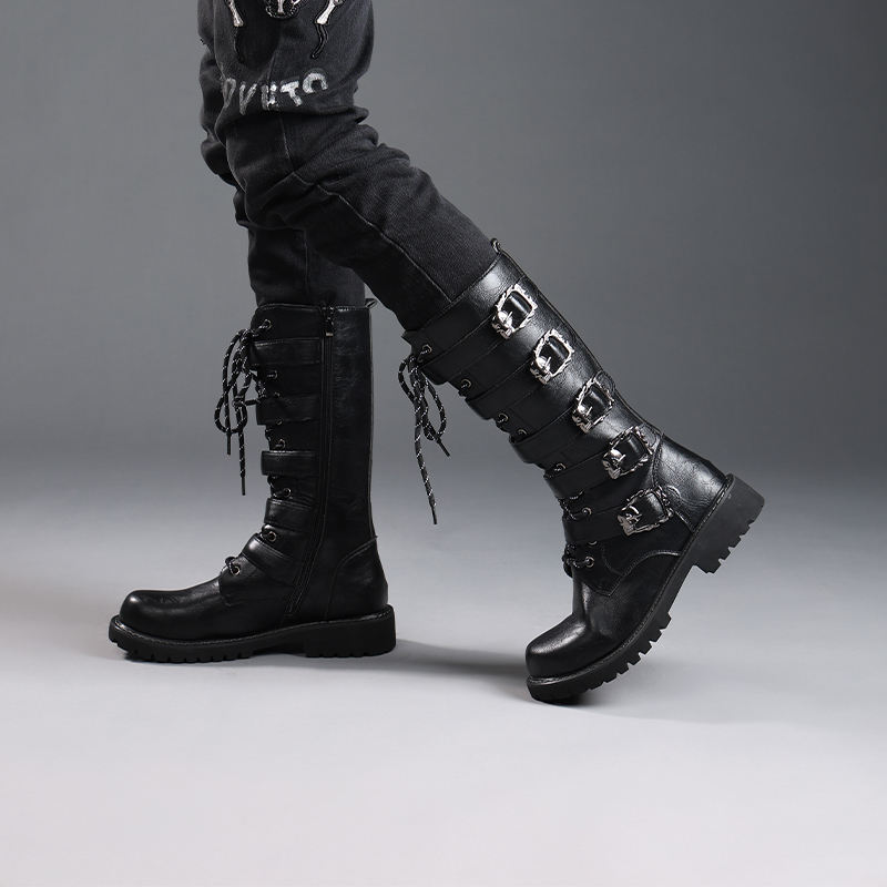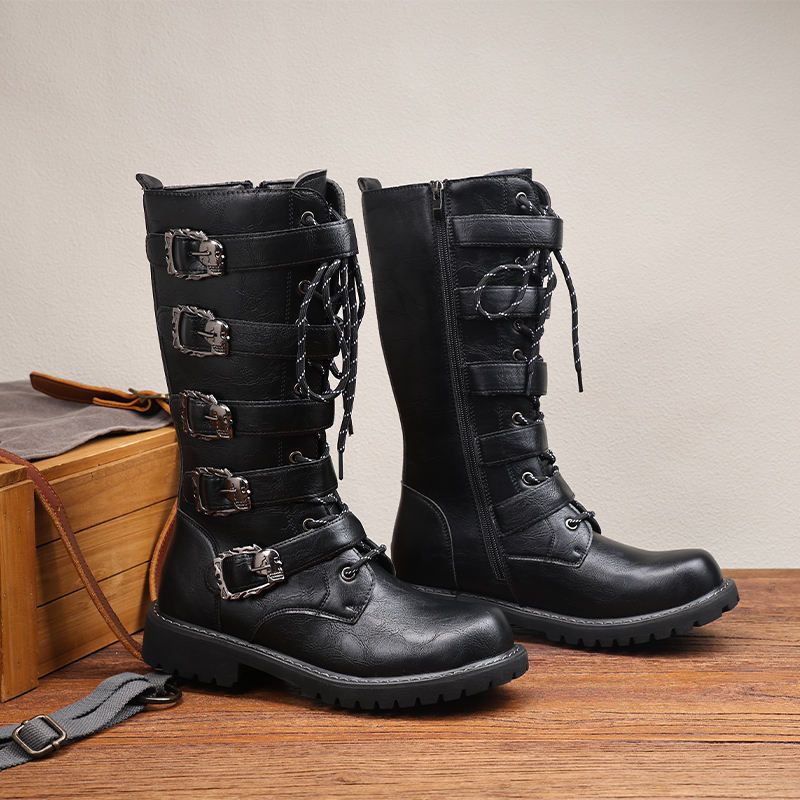Bottes hautes pour hommes, style rétro équestre, tendance, montantes, style britannique, moto, toutes saisons, tige en PU, semelle en caoutchouc
