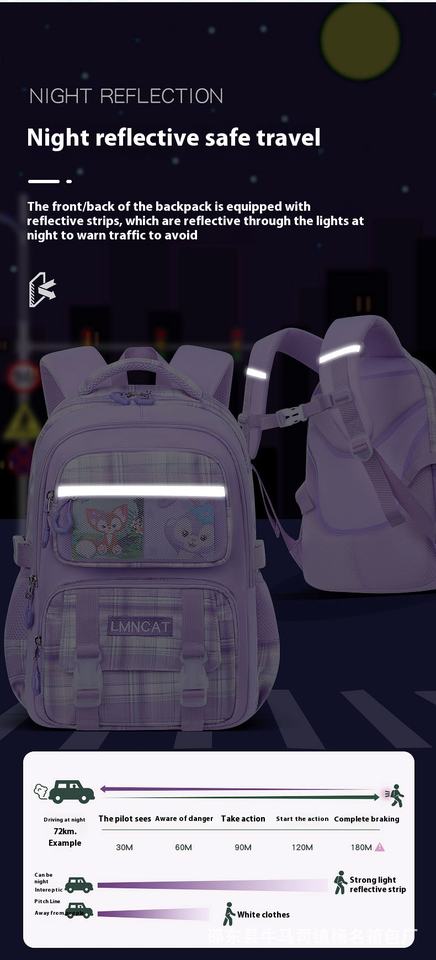 Nouveau cartable de grande valeur pour les élèves du primaire Femmes Enfants Grade 1-6 Protection de la colonne vertébrale légère Réfrigérateur à ouverture latérale
