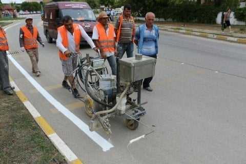 Lignes de route, parkings, aéroports, courts de tennis, bordures, trottoirs, terrains de jeu