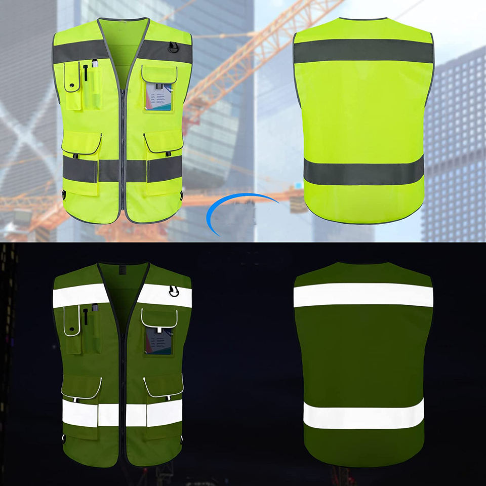 Gilet de sécurité haute visibilité 9 poches Bandes réfléchissantes Unisexe pour travaux de construction Couleur et logo personnalisés Toutes saisons