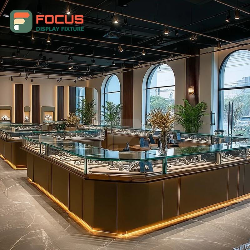 Meubles de présentation pour bijouterie à haute visibilité, vitrine en verre trempé pour bijouterie