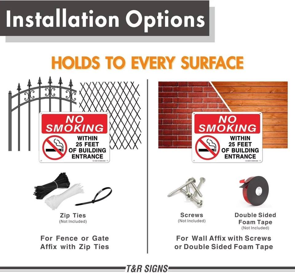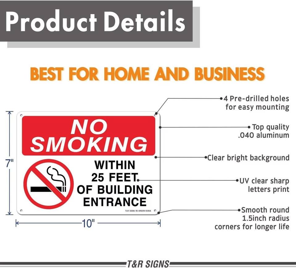 Panneau d'interdiction de fumer haute visibilité à moins de 25 pieds, panneau d'avertissement réfléchissant en aluminium pour la sécurité des entrées de bâtiments