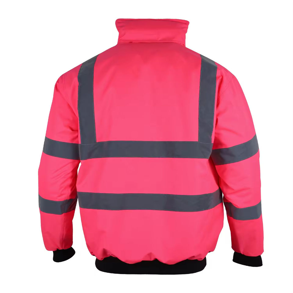 High Visibility Pink Safety Jacket Waterproof Polyester Reflective Workwear for Winter with Customizable Logo
