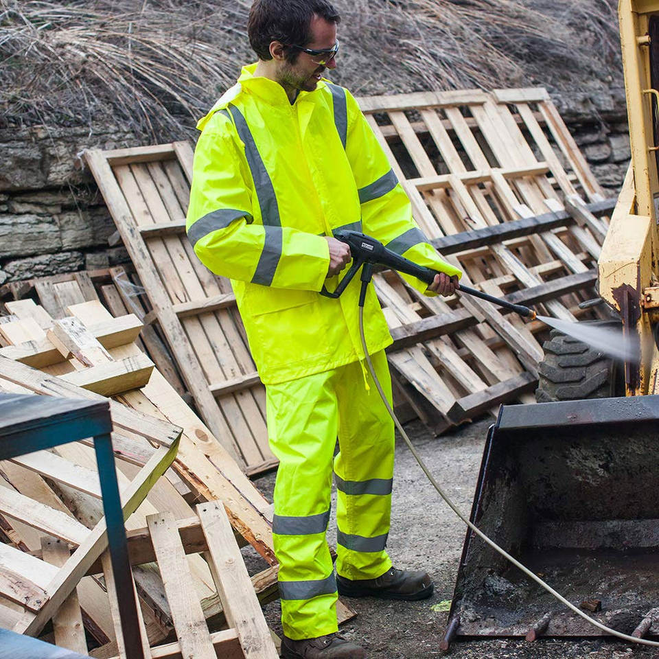 Vêtements de pluie haute visibilité : Veste de sécurité et salopette réfléchissante, sweat à capuche, vente en gros Jaune/Vert