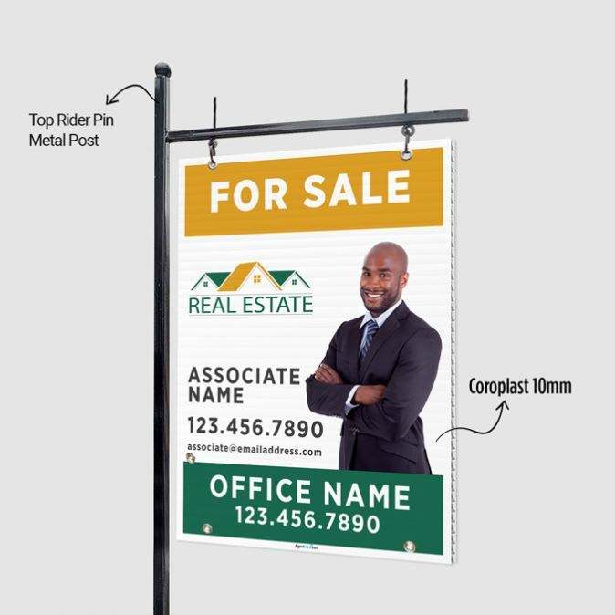 Panneau immobiliaire haute visibilité pour la vente, utilisation extérieure, idéal pour les annonces immobilières, avec cadre, panneaux suspendus