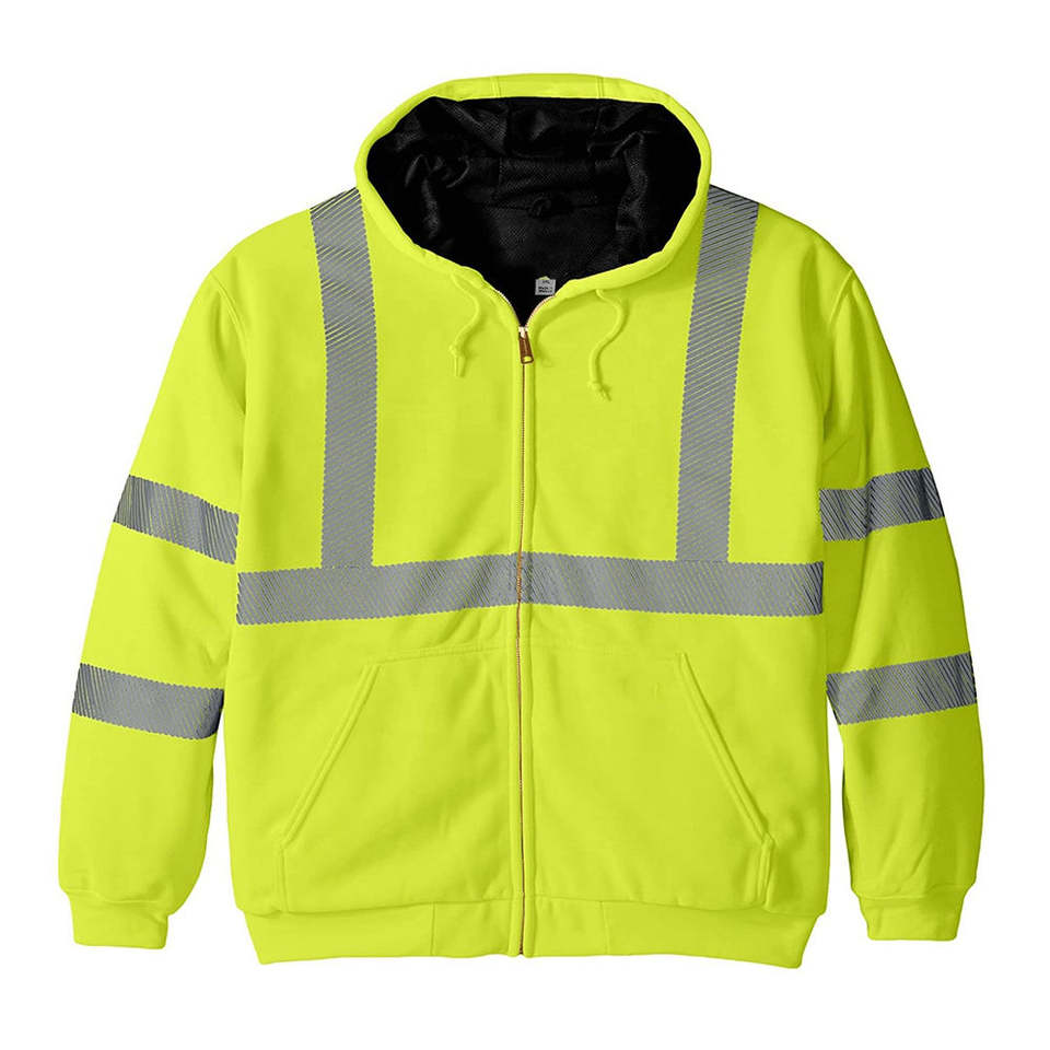 Veste de sécurité d'hiver unisexe en polyester réfléchissant certifiée ANSI, haute visibilité, pour agents de sécurité, travaux de construction, sweat à capuche haute visibilité
