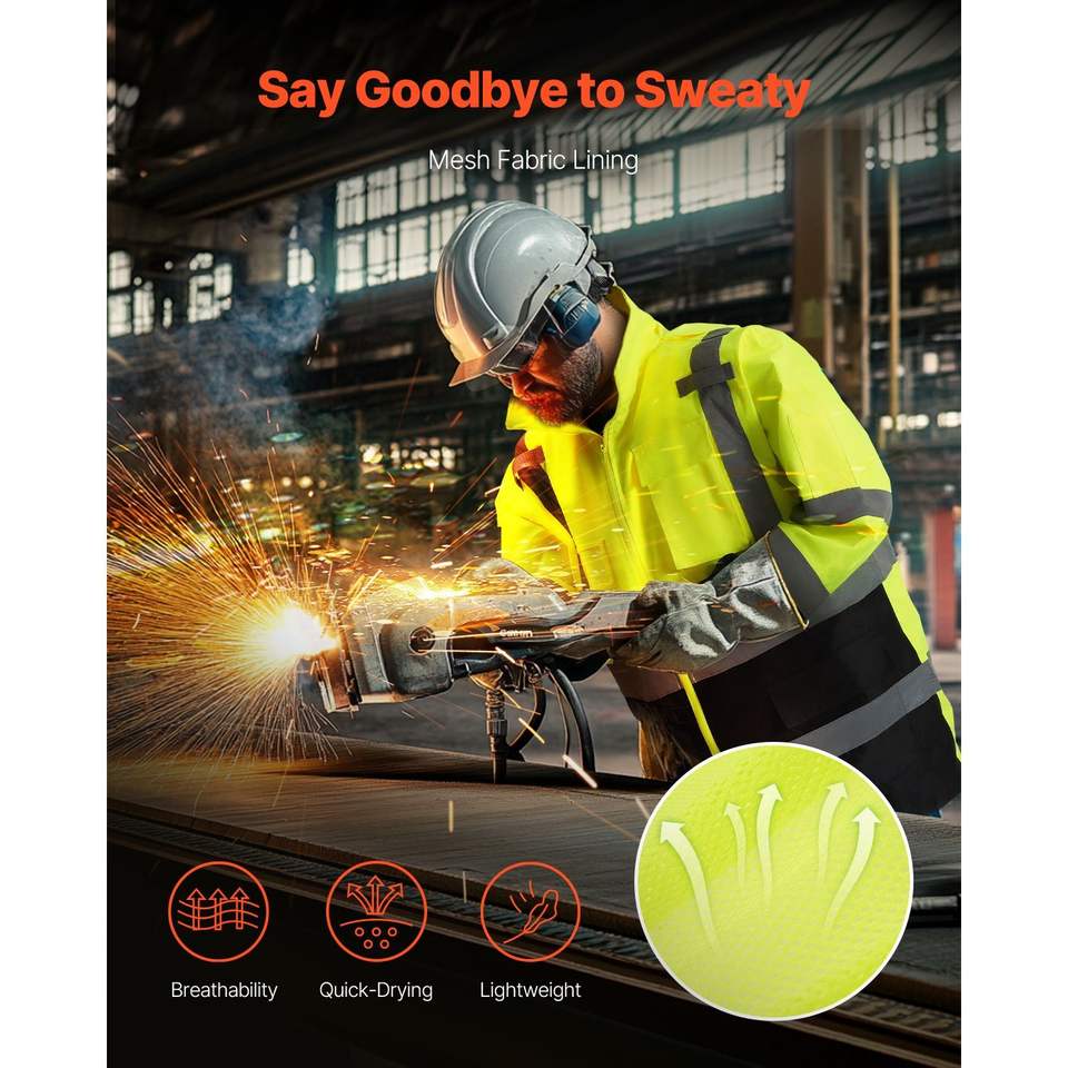 Veste de sécurité réfléchissante haute visibilité pour hommes et femmes, imperméable, avec capuche et poches, pour le travail par temps de pluie