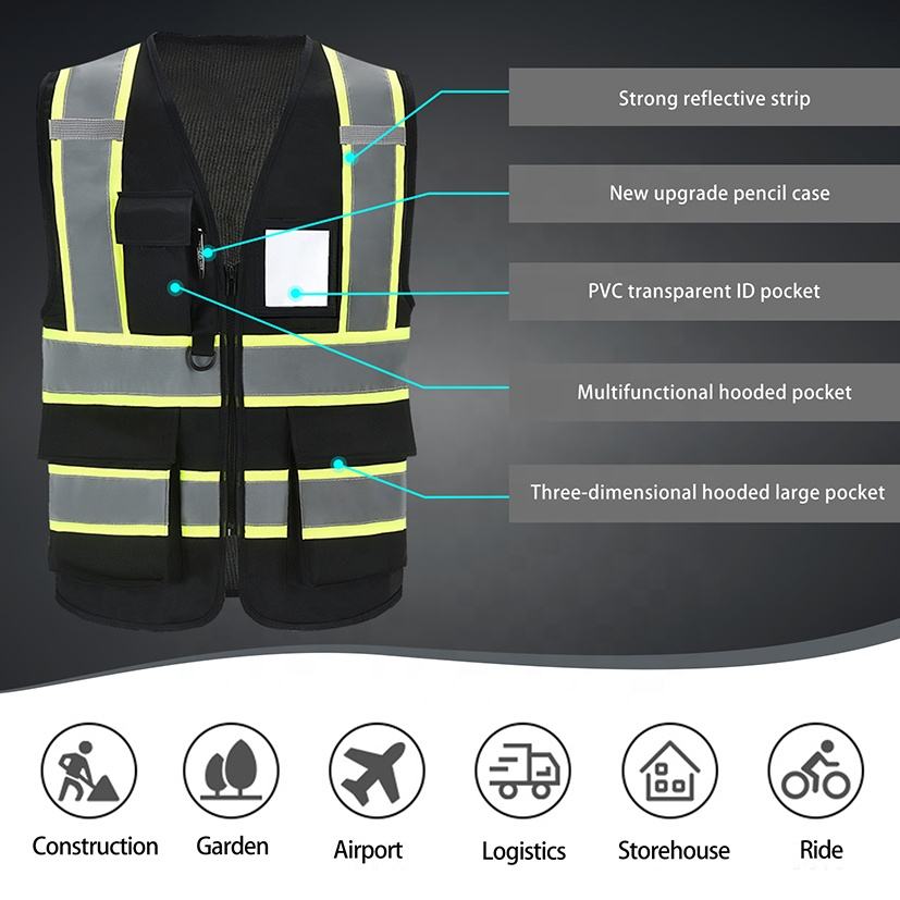 Gilet de sécurité réfléchissant haute visibilité pour femmes et hommes, fermeture éclair sur le devant, conforme aux normes ANSI/ISEA