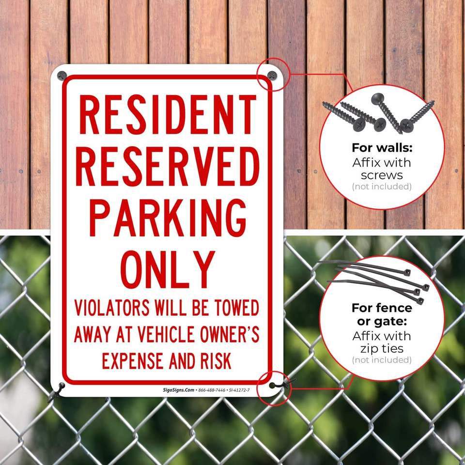 Panneaux de stationnement réservés aux résidents à haute visibilité, marqueurs de régulation du stationnement pour appartements, communautés résidentielles