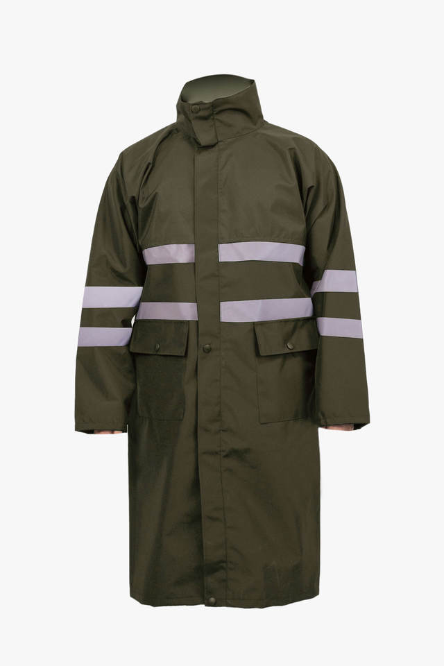 High Visibility Windproof Waterproof PU Coated Eco-Friendly Lightweight Rain Jacket Reflective Strips for Camping Outdoor Use